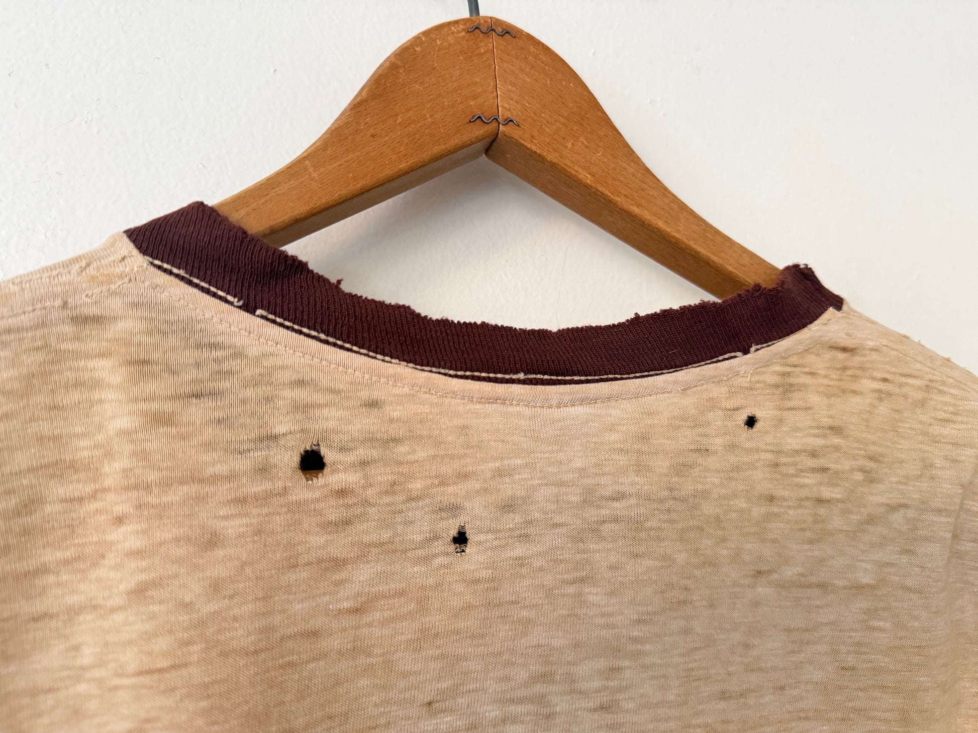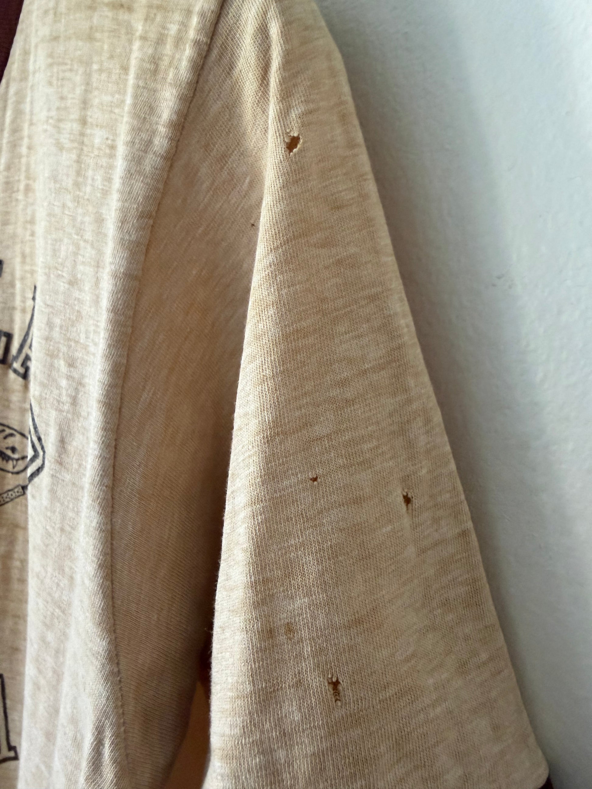 - In good vintage condition. Lots of tiny holes. Some fraying on collar.