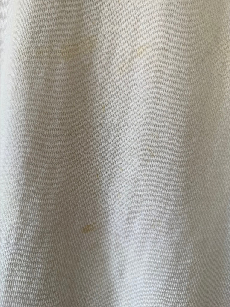 - Ripped and frayed all along collar. Some faint staining on front. In good vintage condition.